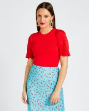 This bodycon jumper from Savida has been designed in an eye-catching shade of red. The gathered sleeves sport cut out floral details and stylish scalloped hems. Savida is available exclusively at Dunnes Stores . Style #7936864