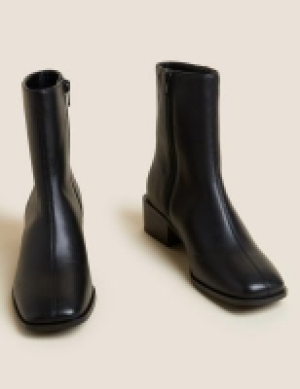 M&s Collection Leather Block Heel Square Toe Ankle Boots